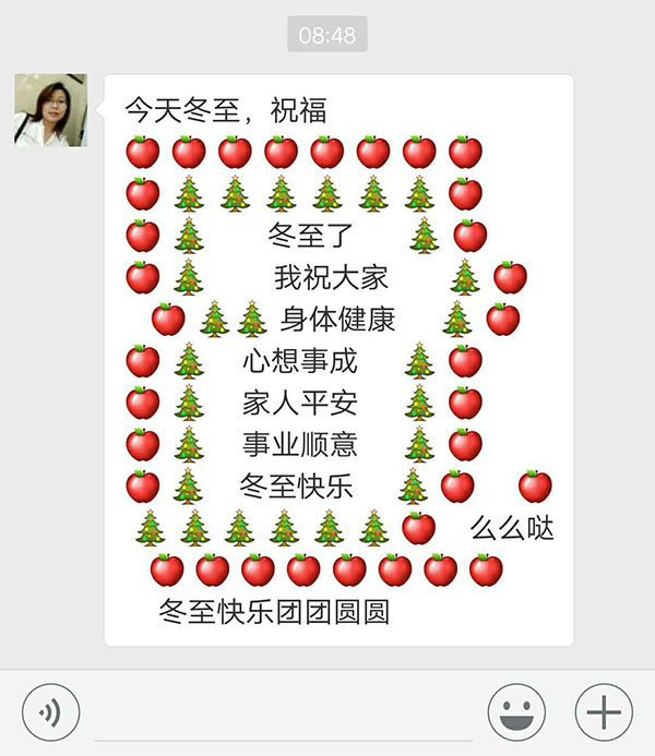 我們王總一大早,就給了我們一個驚喜:今天冬至提前下班,一起包餃子。而且老板親自去買包餃子材料回來,就像一家人一樣。